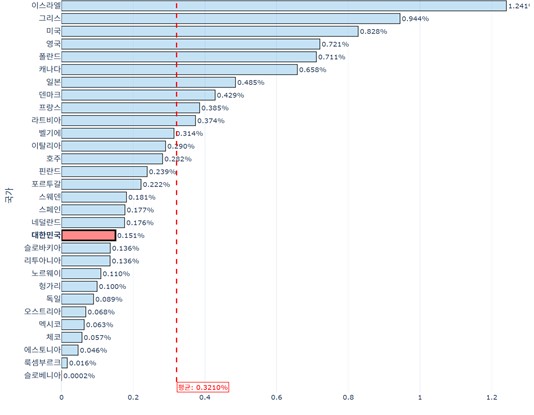 ▲ OECD 30개국의 부동산보유세 실효세율 (자료: 토지+자유연구소, 토지+자유 통계)이 교수의 내용과 유사하게 전강수 대구가톨릭대 명예교수는 다음과 같이 질타한다.