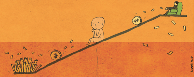 6년 전 전 세계에 불어 닥친 펜데믹 사태가 우리 나라에서도3년 동안이나 지속되면서 이러한 빈부격차와 경제양극화 현상은 전 세계적으로 더욱 심화된 결과, 상위 소득 10%는 전체 소득의 52%를 차지하게 된 반면에 하위 50%는 8%만 차지하는 데에 불과했습니다. 이는 1995년부터 지속된 추세로서, 세계 상위 1%는 이후 축적된 부의 1/3 이상을 가져간 반면 하위 50%에게는 2%만 주어졌습니다. 이렇게 극소수의 부자 쪽으로 부가 편중되는 바람에, 다수는 저소득층으로 이동했으니 ‘양극화’라기보다는 빈익빈 부익부 현상이라고 해야 정확합니다. 한 번 벌어진 부와 빈곤은 세대를 거쳐 대물림되기 때문에 이 현상은 갈수록 심화되어 가는 사회악 현상입니다.