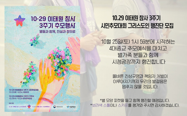 10·29 이태원 참사 3주기를 맞아, 종교와 시민사회가 함께 희생자 159명의 생명을 기억하고 진실과 정의의 사회를 기도하는 자리가 마련된다.